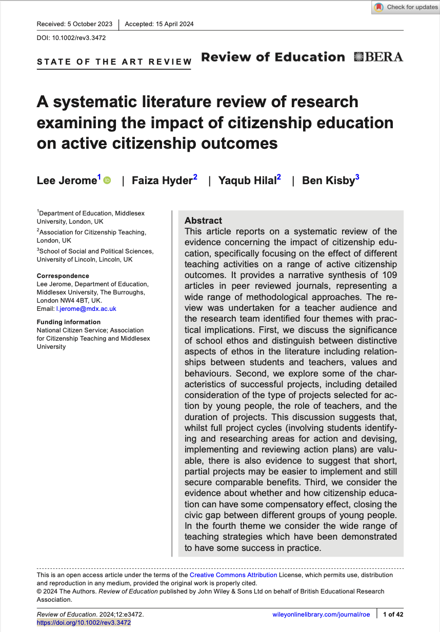 Dr. Caitlin Krenn, DSW, LCSW, SIFI 9/3/24 Dr. Caitlin Krenn, DSW, LCSW, SIFI 9/3/24 A systematic literature review of research examining the impact of citizenship education on active citizenship outcomes Read More